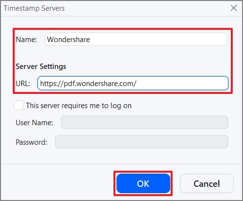 Zeitstempel-Server hinzufügen -