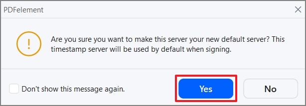 Im neuen Dialogfeld „PDFelement“ bestätigen Sie den Server als Standard, indem Sie auf die „Ja“ Schaltfläche klicken.