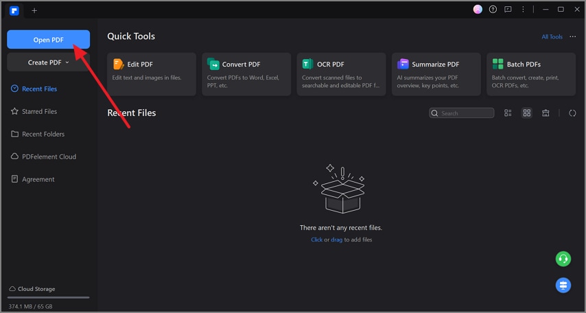 Starten Sie das Tool und navigieren Sie zur Schaltfläche „PDF öffnen“, um Ihr gewünschtes PDF zur Übersetzung auf die Plattform zu importieren.