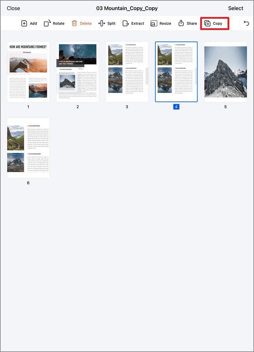 PDFelement für iOS ermöglicht die mühelose Duplizierung von Seiten. So können Sie identische Kopien jeder Seite oder Auswahl als Referenz, zum Vergleich oder zur Wiederverwendung von Vorlagen erstellen - und das alles, ohne Ihr Originaldokument zu verändern.